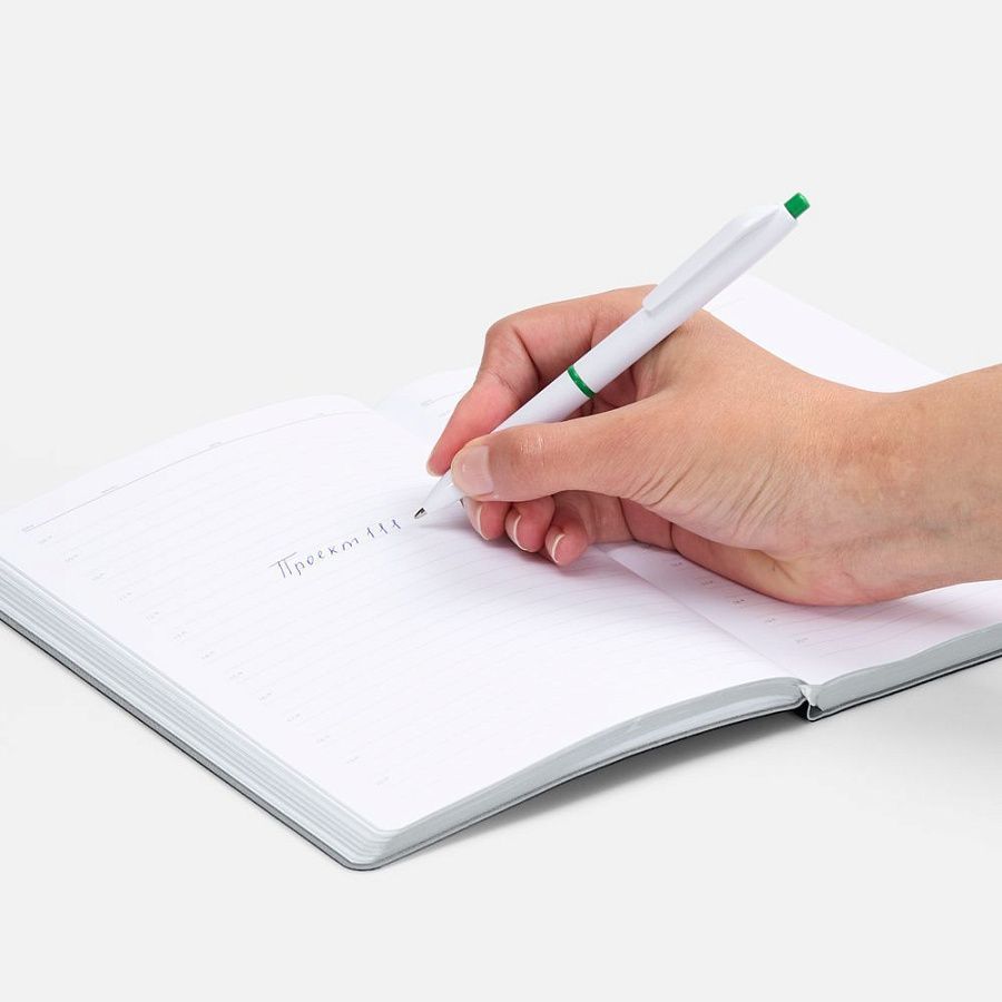 Классическая модель ручки с акцентными деталями: кольцом и кнопкой, которые дополнят логотип компании.