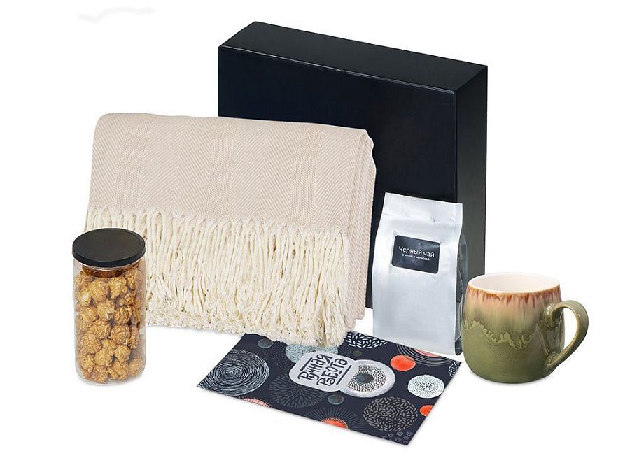 Набор «Re:y. Haven» - о том, чтобы создать свой уголок тепла и спокойствия. Своё убежище. Укутайтесь в мягкий плед, заварите ароматный, успокаивающий чай в кружке и наслаждайтесь ароматом уютного вечера. Попкорн поможет сделать каждый глоток ещё вкуснее и теплее. Этот набор превращает каждый вечер в момент, который принадлежит только вам.