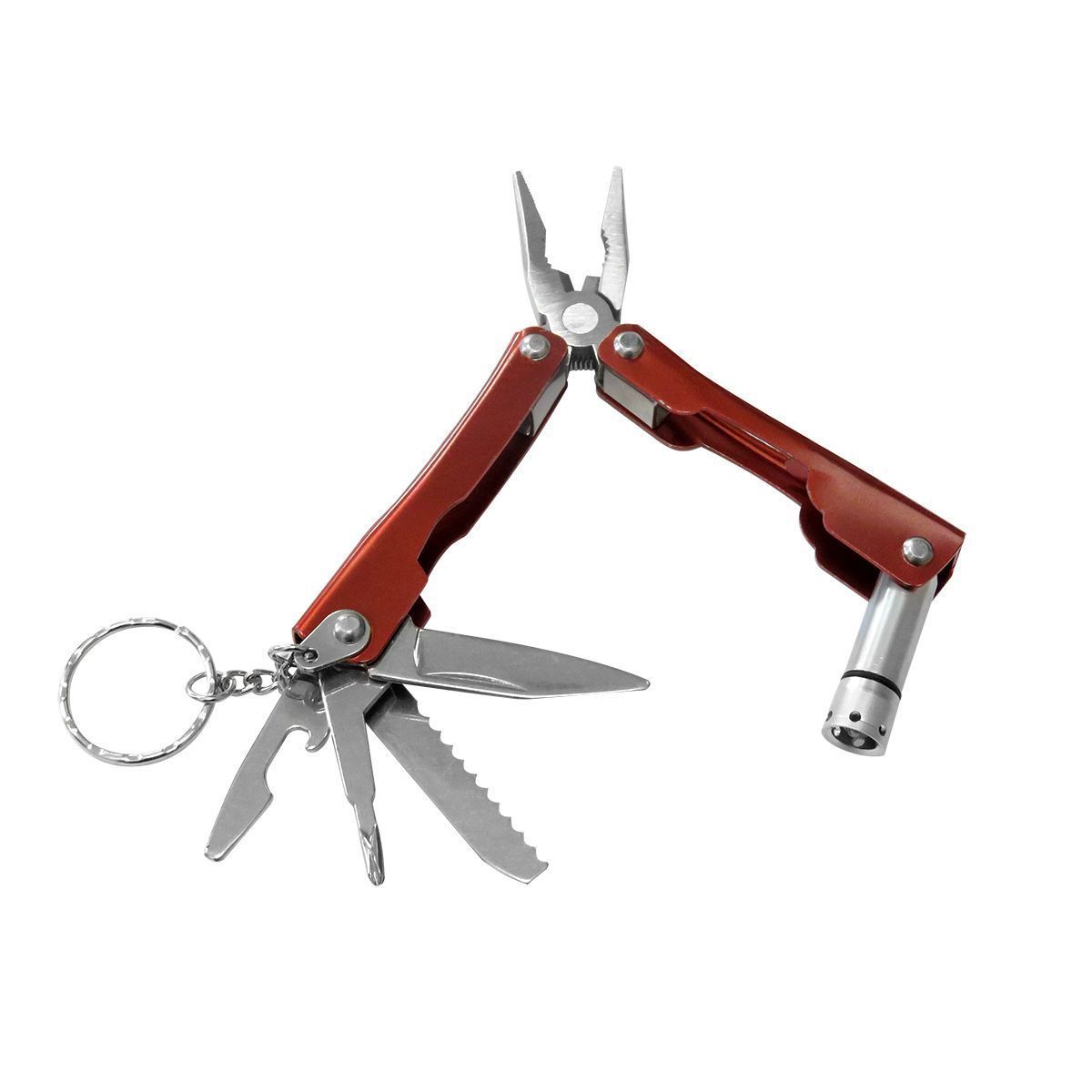 - Функции: Плоскогубцы, нож, пила, отвертки, открывалка для бутылки, фонарик