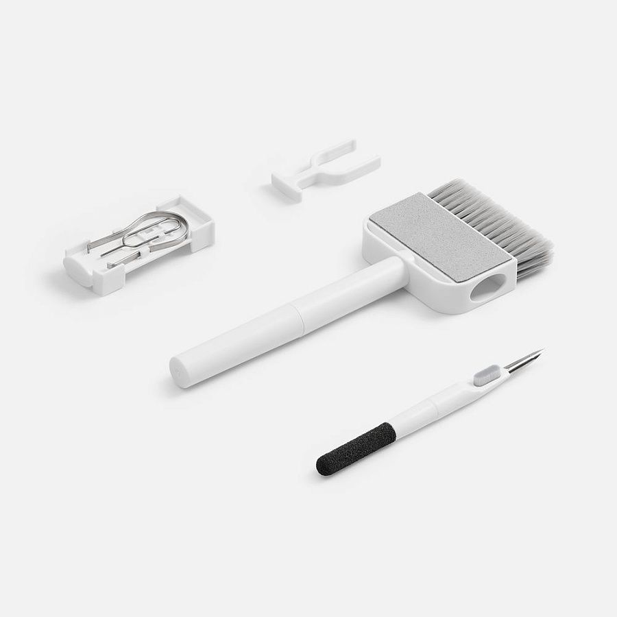 Набор предназначен для всех типов гаджетов. Инструменты компактно складываются внутрь большой щетки.