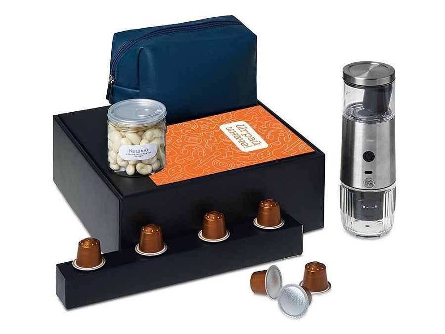 Набор "Re:y. Boost" о бодрости, энергии и маленьких ритуалах, которые можно взять с собой. Портативная кофемашина и кофе в капсулах позволяют приготовить ароматный напиток дома, в офисе или на прогулке. Кешью в глазури добавляет сладкую нотку, а косметичка позволяет взять любимые вещи с собой, куда бы вы ни отправились.. Этот набор превращает привычный утренний ритуал в момент бодрости и комфорта, где бы вы ни были.