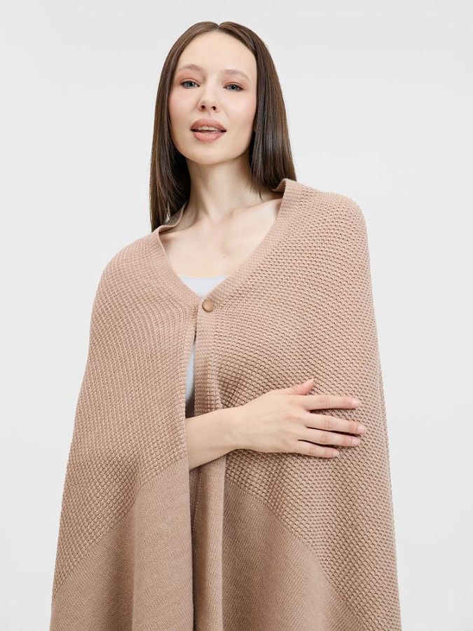 Плед Voyage соткан из мягкого сочетания шерсти и акрила — нежный, теплый и невесомый, он идеален для уютных вечеров. Кнопка позволяет превратить его в элегантную накидку, когда воздух становится прохладнее.