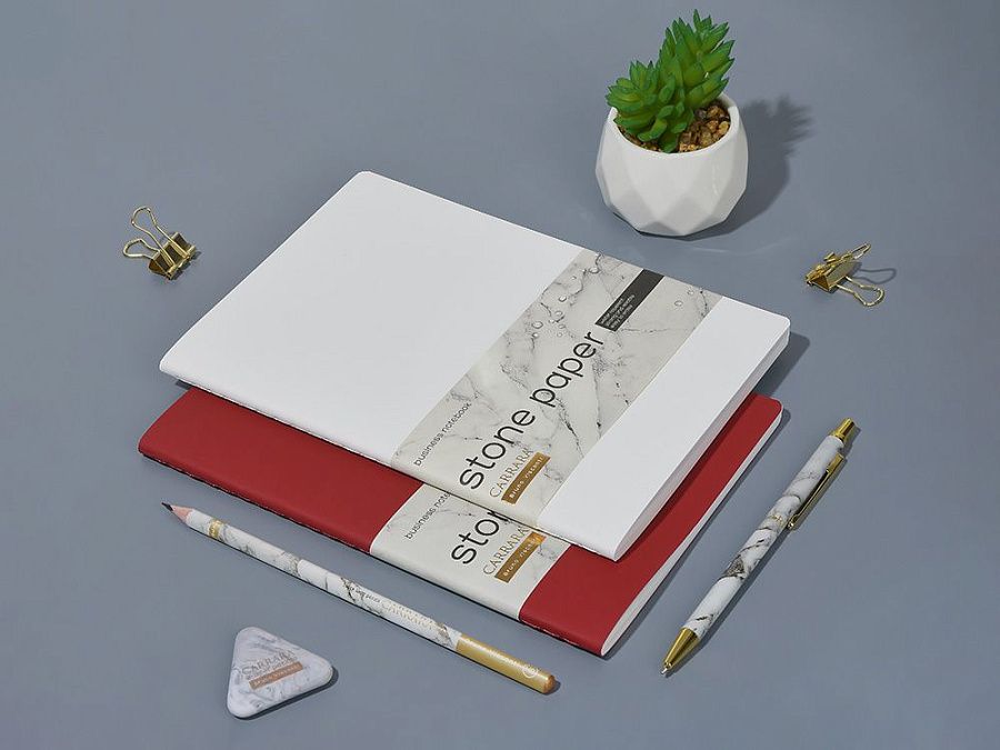Блок изготовлен из каменной бумаги плотностью 144 г/кв.м, которая отличается особой гладкостью и повышенной прочностью. Она не боится воды, достаточно просто протереть сухой салфеткой.