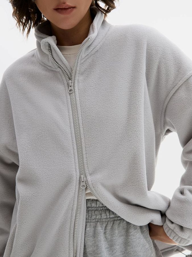 - Центральная молния с двойным бегунком в тон изделия и ветрозащитной планкой