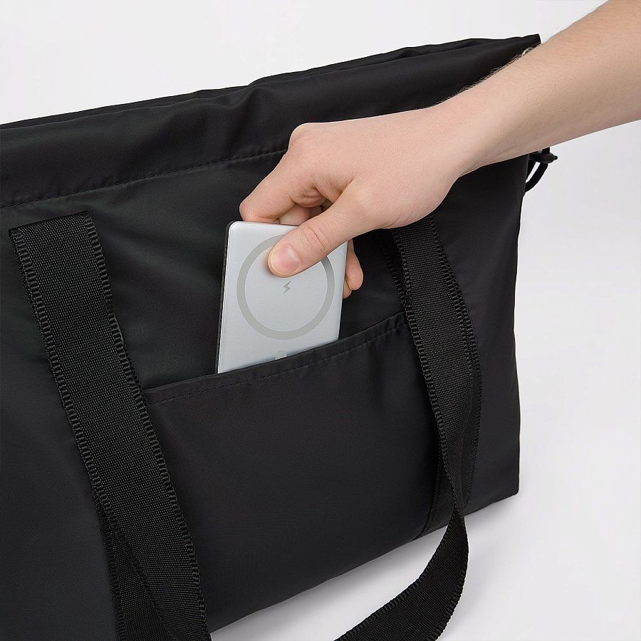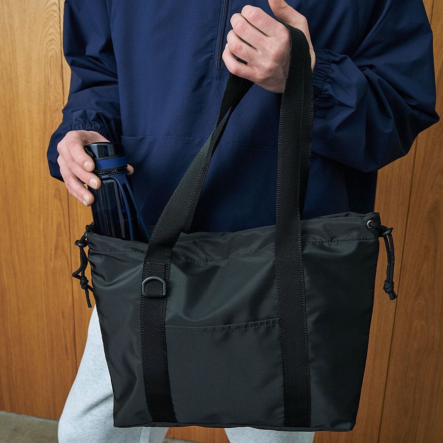 Есть внешний карман для мелочей, а также шнурок для регулирования ширины шоппера.
