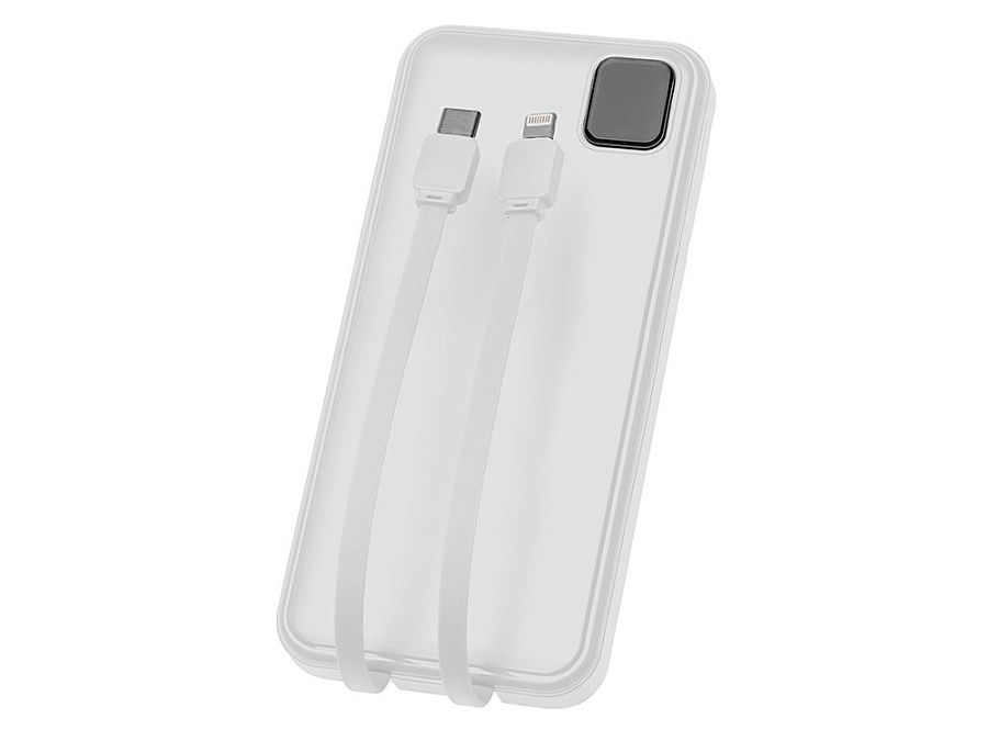 Удобный внешний аккумулятор с встроенными кабелями USB-C и Lightning — ваш надежный партнер в путешествиях, на встречах и в повседневных задачах. Цифровой дисплей в реальном времени показывает точный остаток заряда, а компактные габариты делают его таким же удобным, как смартфон. Прочный корпус из переработанного АБС-пластика и емкость 10000 мАч обеспечивают долгую работу даже при интенсивном использовании. Идеальный выбор для тех, кто ценит комфорт и функциональность в одном устройстве. Продуманная упаковка: для открытия просто потяните за язычок, и появится гаджет с нанесением.