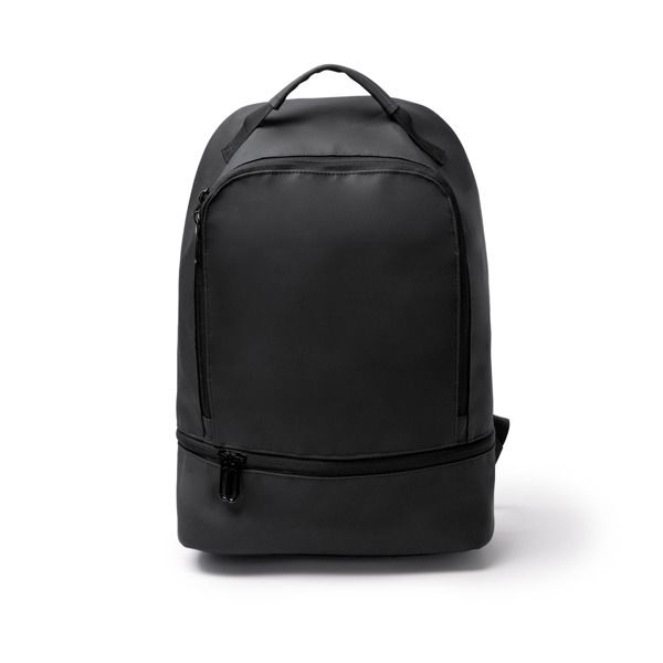 Рюкзак из искусственной кожи. Основное верхнее отделение с двойной застежкой-молнией, включая внутренние сетчатые отсеки и карман на молнии, а также карман с эластичной регулировкой для устройств до 10". В нижней части есть еще одно отделение для переноски других предметов, также с двойной застежкой-молнией. На задней части рюкзака есть вертикальный карман с защитой против кражи. Мягкая спинка и ручки для большего комфорта.