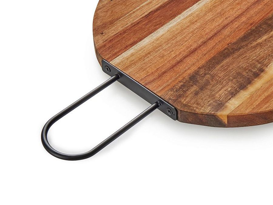 Круглая доска "Кира" из массива акации — не просто кухонная утварь, а настоящее украшение для вашего рабочего пространства. Благодаря твердости древесины и пропитке специальным маслом, поверхность устойчива к появлению глубоких царапин и впитыванию запахов, способна сохранить безупречный вид долгие годы. Удобная металлическая ручка позволяет легко перемещать доску по кухне, а после использования — отправить её на крючок для компактного хранения. Диаметр 23 см идеально подходит для нарезки овощей, зелени, сыра или эффектной сервировки закусок перед подачей на стол. Подарите себе гармонию функциональности и природной эстетики с доской «Кира».