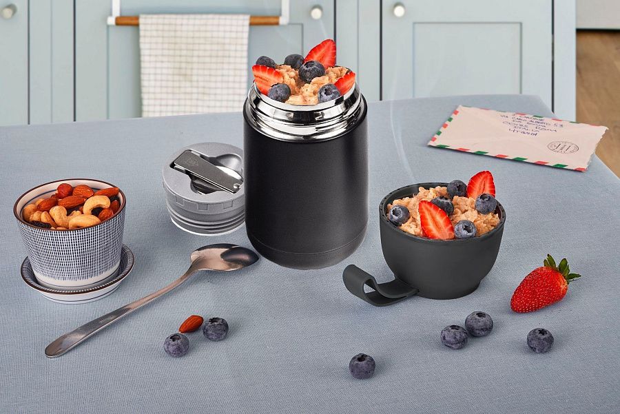 Термос для еды с супершироким горлом, который отлично подходит для сохранения температуры супов, вторых блюд, детского питания и даже мороженого.