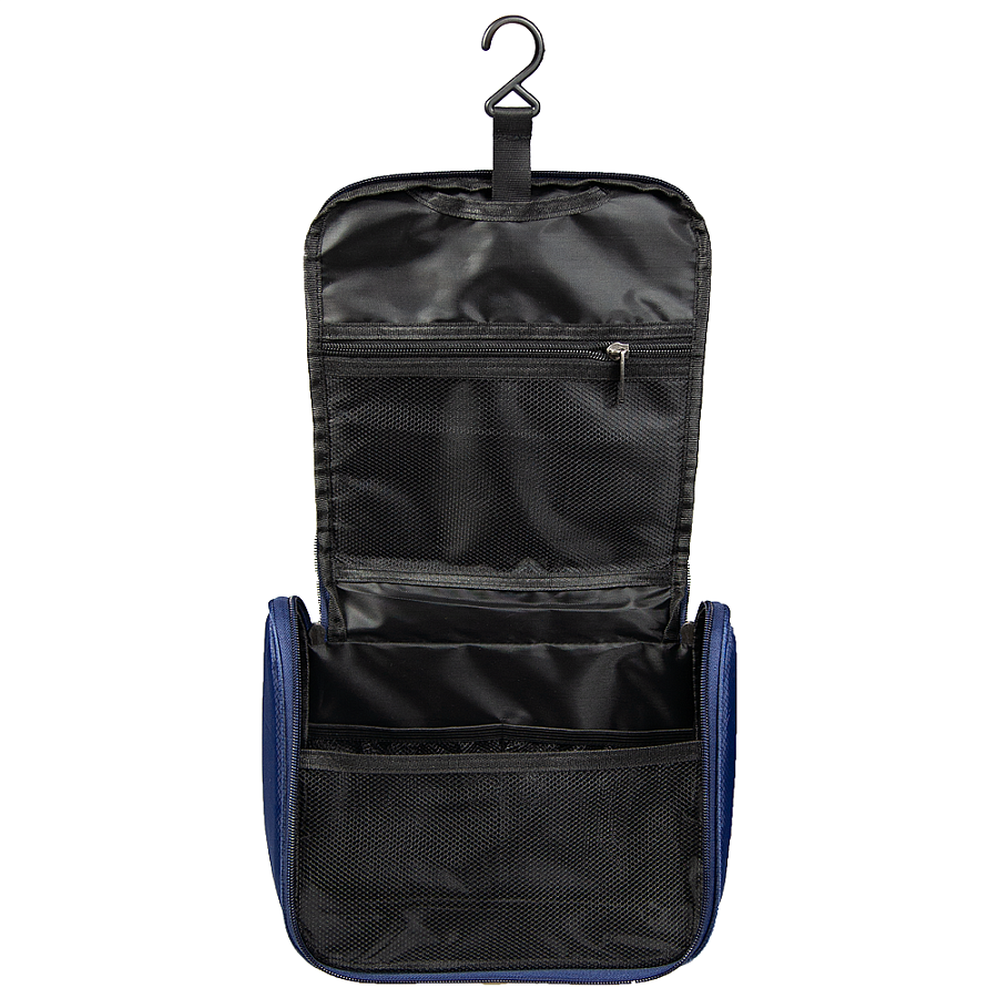 - Удобная организация: Внутренние отделения и кармашки позволяют разместить зубные щетки, шампунь, гель для душа, мыло и другие средства ежедневной гигиены. Также есть специальный крючок для подвешивания несессера.