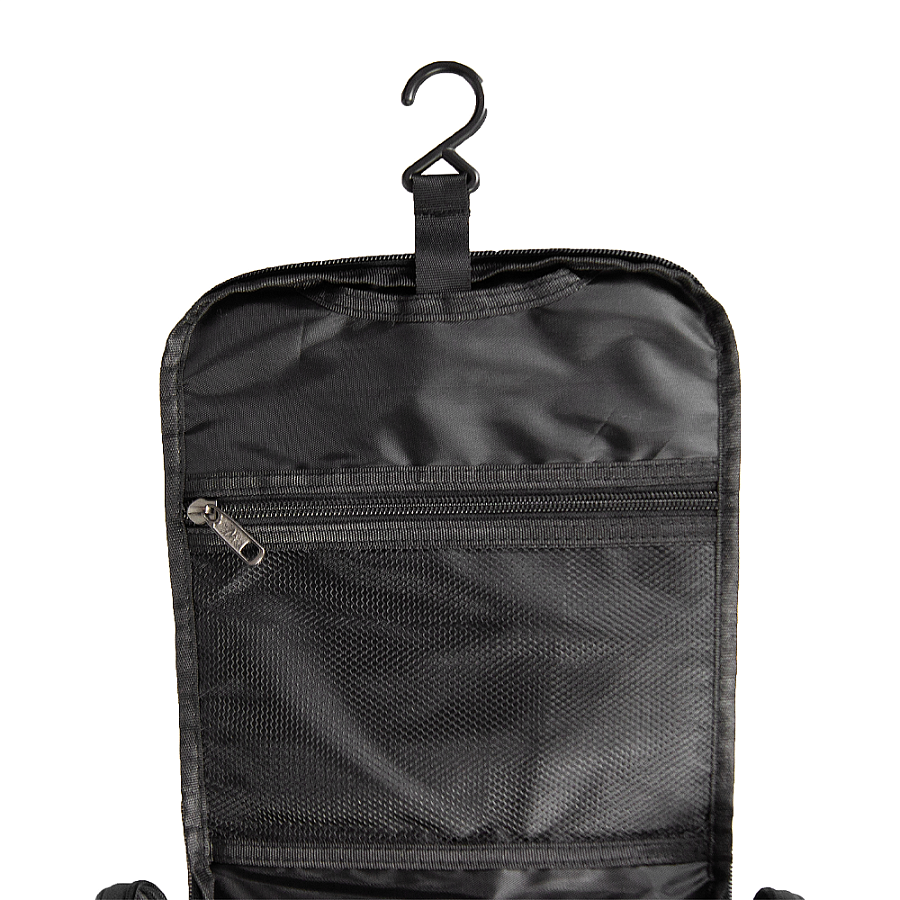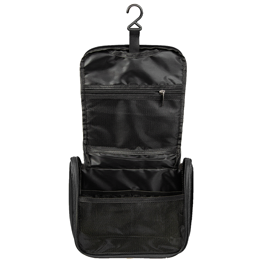 - Удобная организация: Внутренние отделения и кармашки позволяют разместить зубные щетки, шампунь, гель для душа, мыло и другие средства ежедневной гигиены. Также есть специальный крючок для подвешивания несессера.