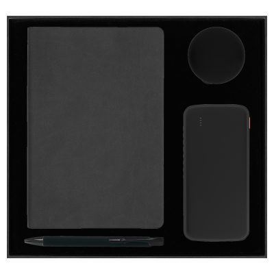 Представляем вашему вниманию набор Solution Prestige Quardo, идеальный аксессуар для деловых людей, ценящих порядок, стиль и технологии. Этот элегантный черный набор включает в себя все необходимое для успешного и организованного дня: стильный ежедневник для ваших заметок и планов, внешний беспроводной аккумулятор для поддержания работы ваших устройств в любой момент, высококачественные наушники для идеального звука во время ваших перемещений и изысканная ручка, которая добавит уверенности в каждое ваше слово. Набор Solution Prestige Quardo — это сочетание функциональности и стиля, которое подчеркнет вашу индивидуальность и профессионализм.