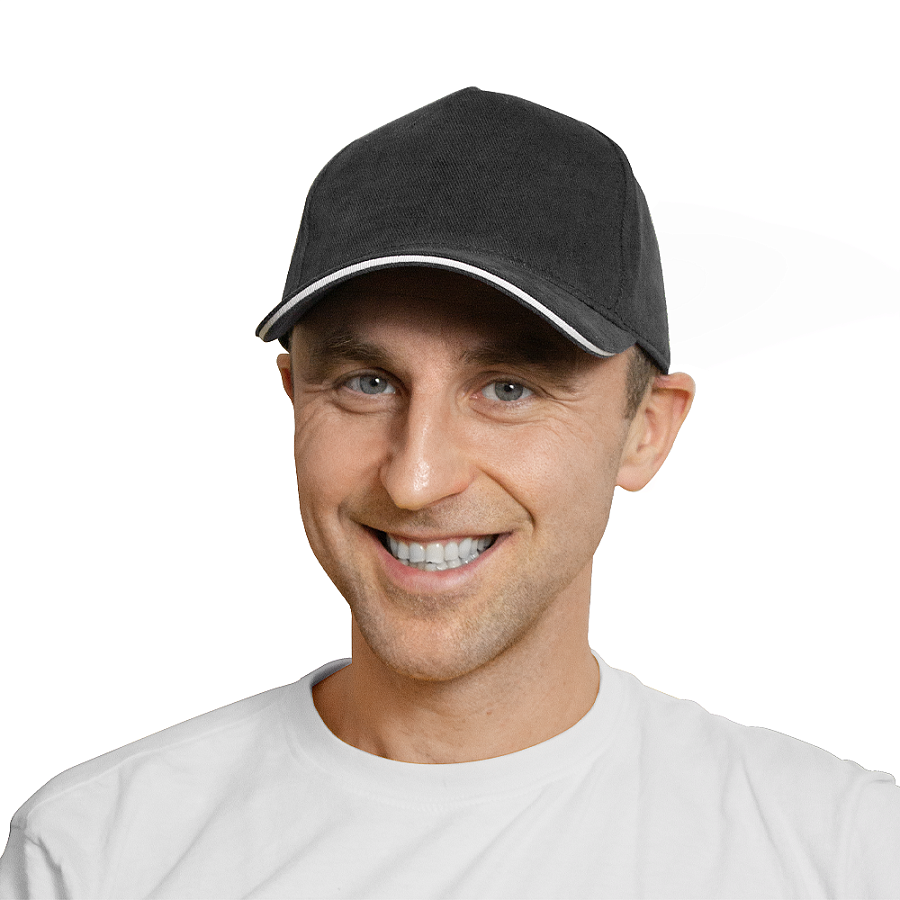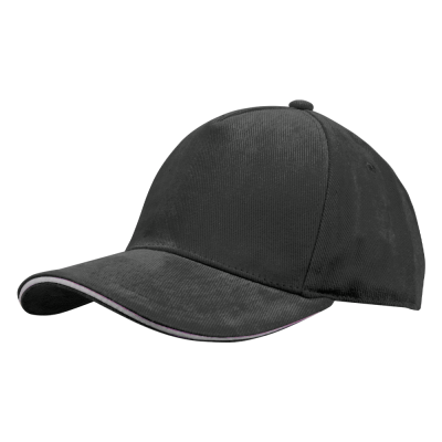 Кепка 6- панельная Salerno Heavy 350,  c белым сендвичем, черная