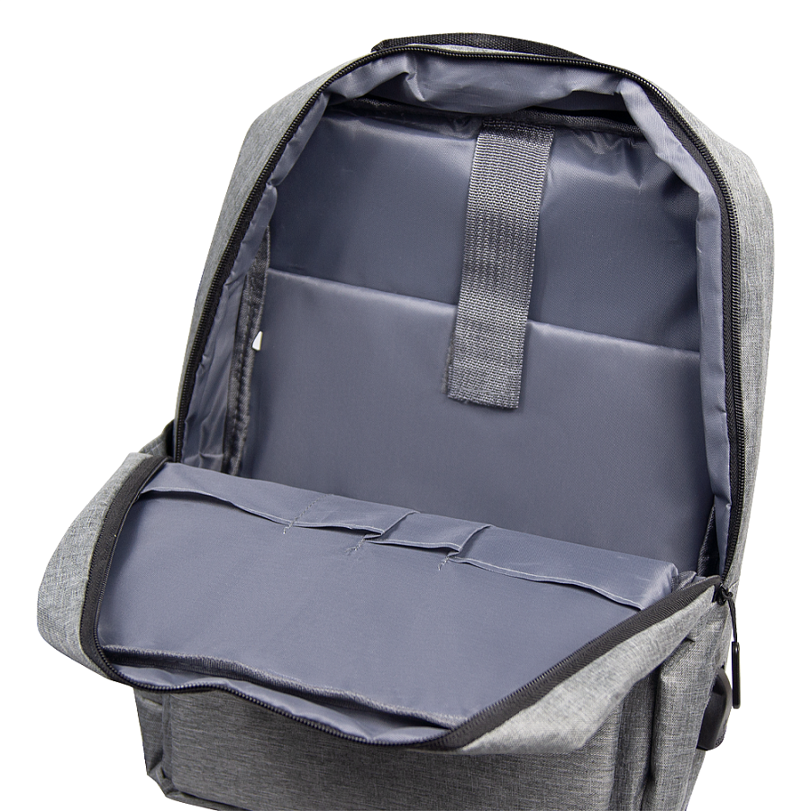 Практичная модель, удобная для использования в повседневной жизни. Имеет два вместительных передних кармана, один из которых скрытый и один боковой карман. Основное отделение содержит внутренний карман на липучке для ноутбука, 2 кармана для мелочей и 2 кармана для письменных принадлежностей. Снаружи расположен USB-разъем с проводом внутри для подключения внешнего аккумулятора, широкие вентилируемые лямки.