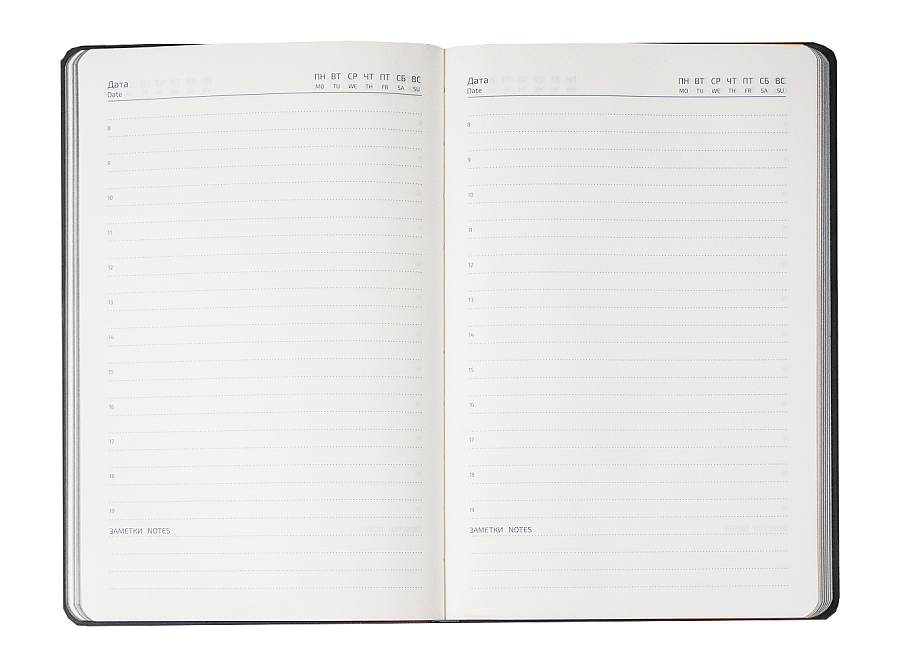 • Страницы матовые, со скругленными уголками, бежевого цвета. Плотность бумаги 70 гр/м2.