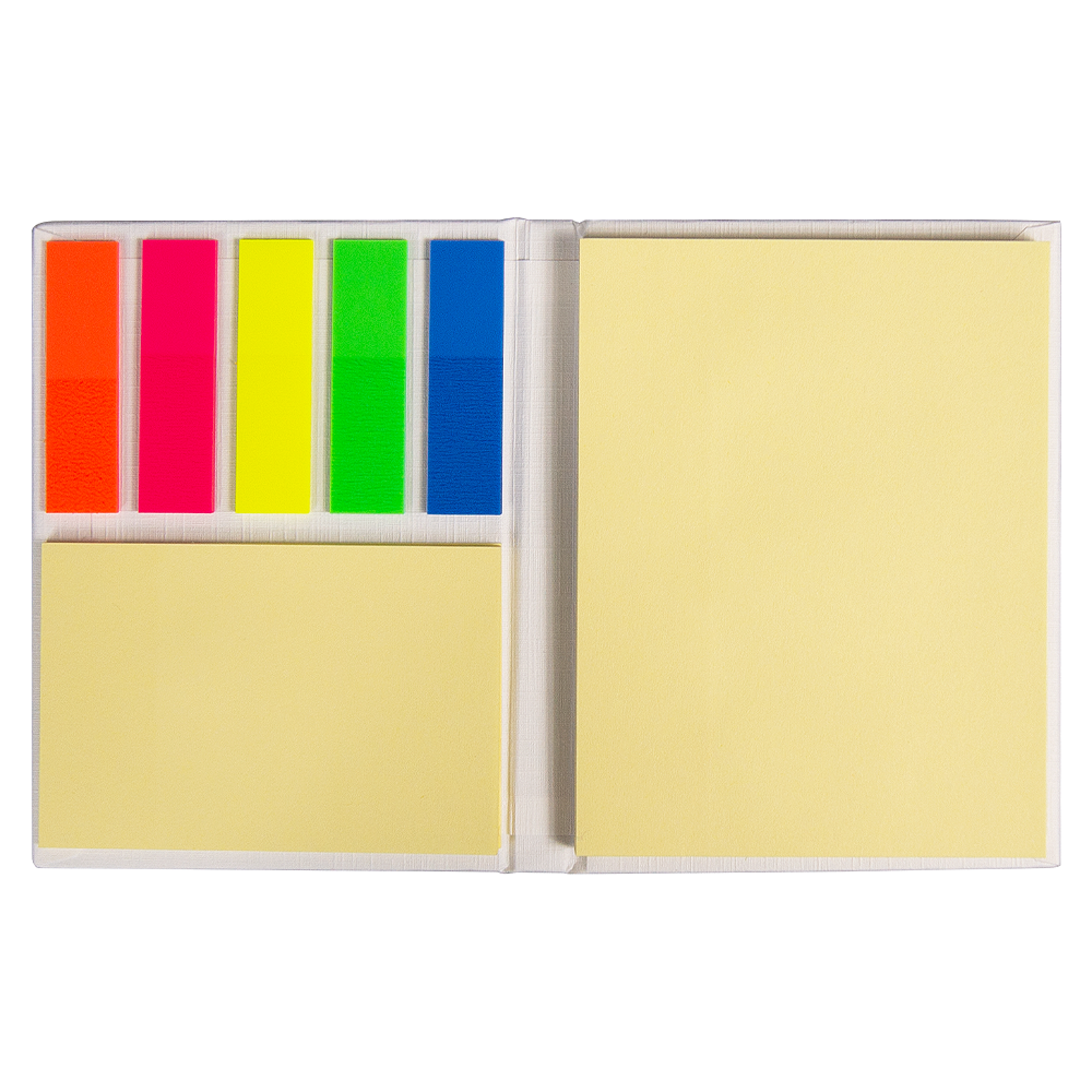 Набор цветных бумажных стикеров  Stick and Fun в твердом переплете, 50 листов в блоке,  размер 8*10,5*1 см, белый