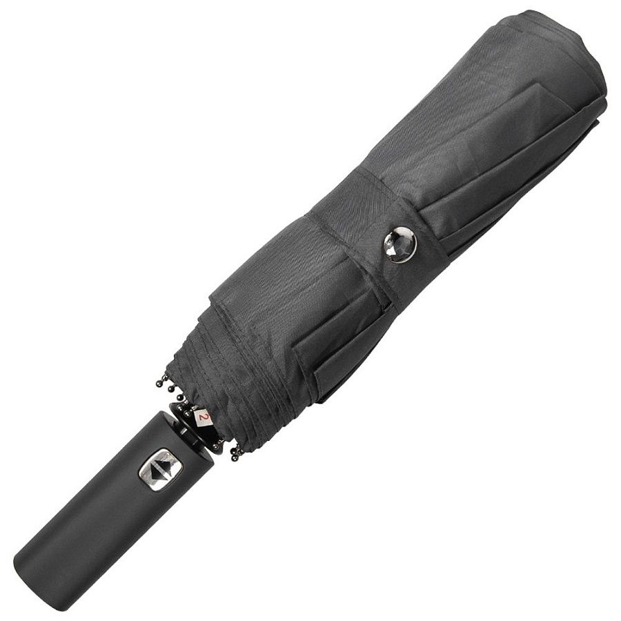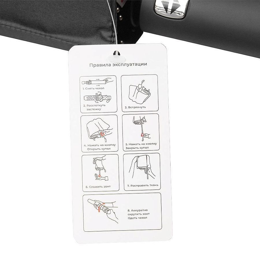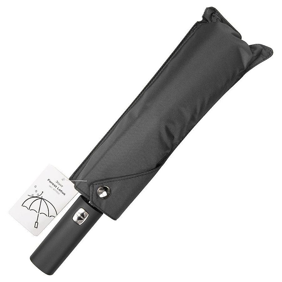 Чехол зонта выполнен из того, же материала, что и купол зонта, внутри и снаружи, имеет уплотнение и большое отверстие, что позволяет удобно упаковать зонт после использования. Чехол закрывается на магнитную кнопку серебристого цвета.