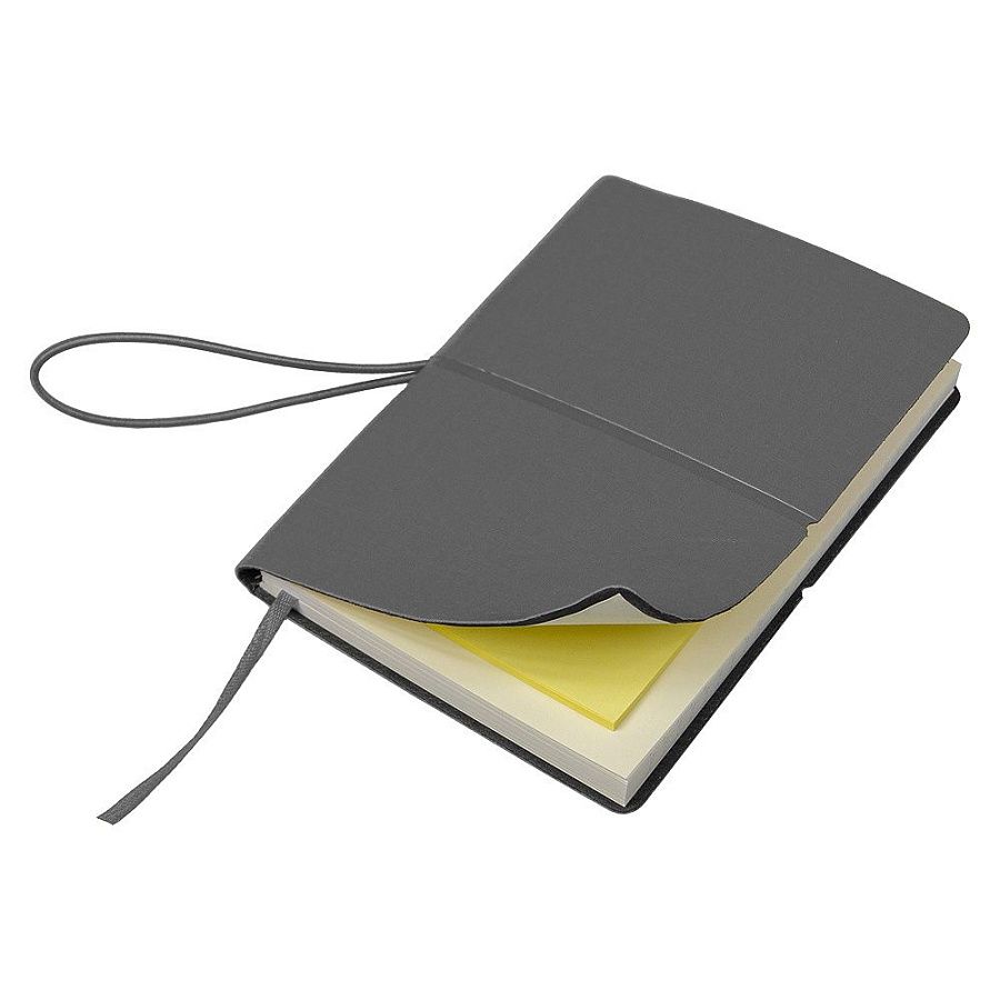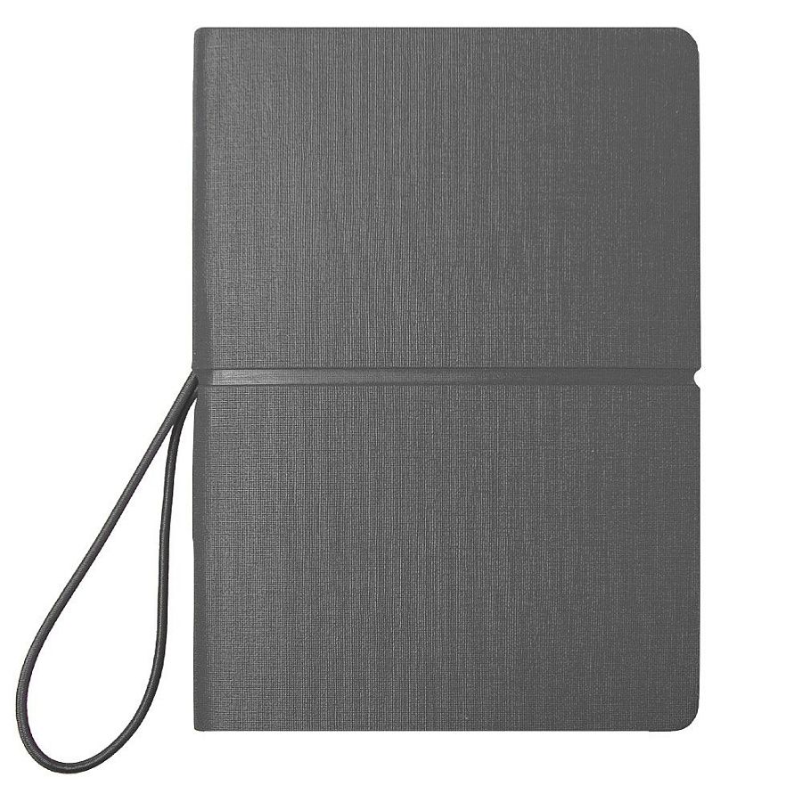 Блокнот А6 Van Diemen со стикерами, в гибкой обложке c резинкой в линейку, серый