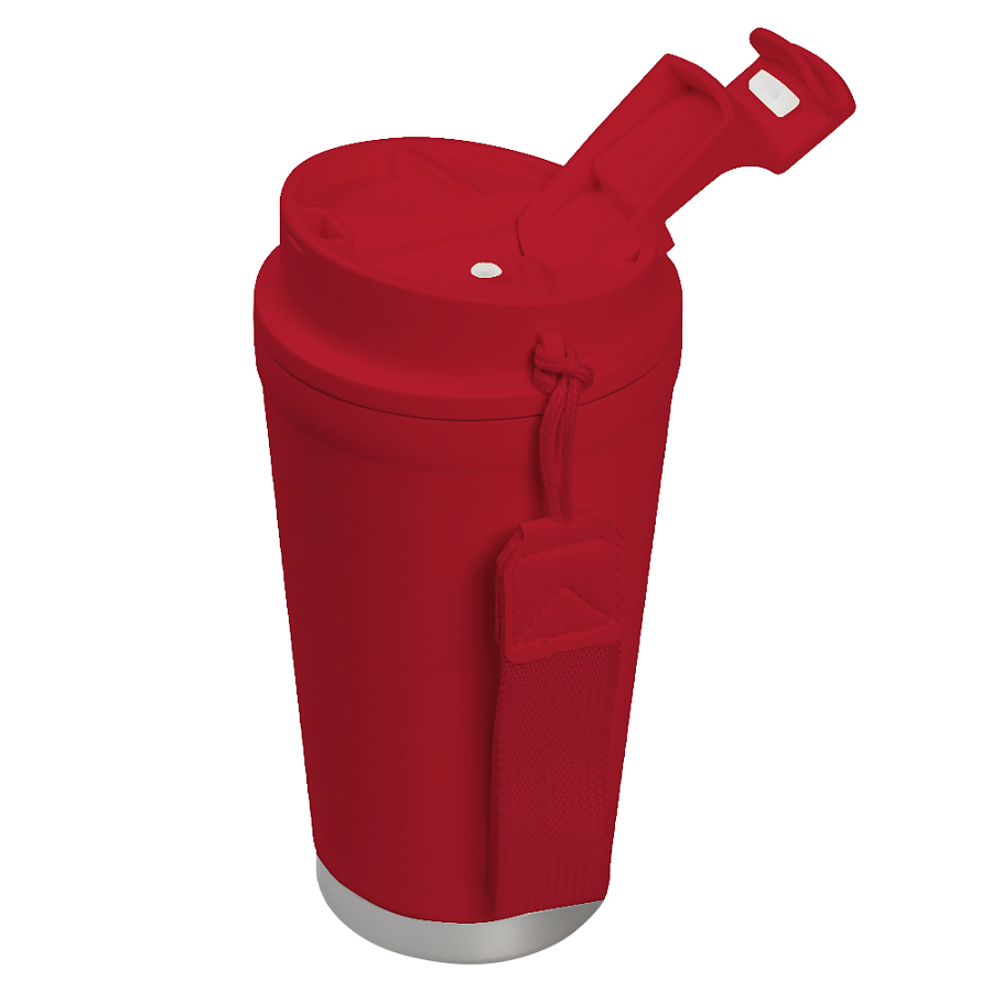 Металлическая термокружка объёмом 410 мл с матовым покрытием и контрастным металлическим основанием. Оснащена герметичной крышкой с откидным клапаном и удобным ремешком для переноски. Поддерживает температуру напитков и подходит для использования в дороге, на работе и в путешествиях.