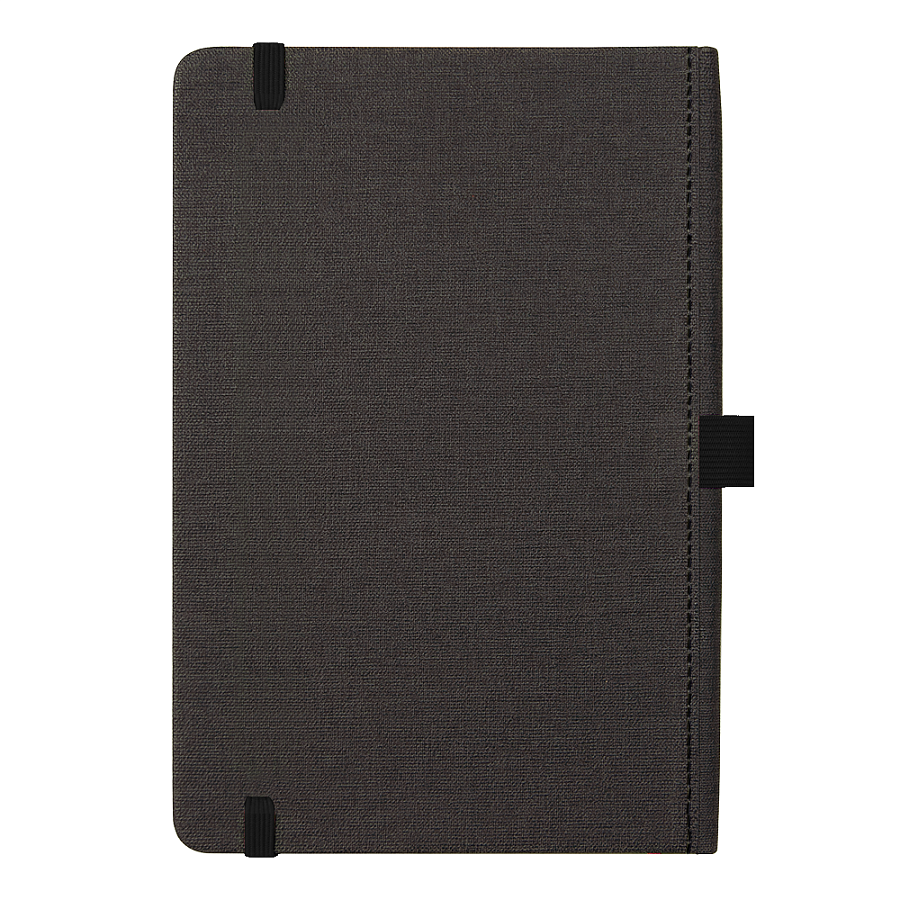 Обложка дополнена цветной резинкой и петлей для ручки, а также ляссе и прострочкой у корешка в едином оттенке — гармонично подчеркивая стиль и функциональность.