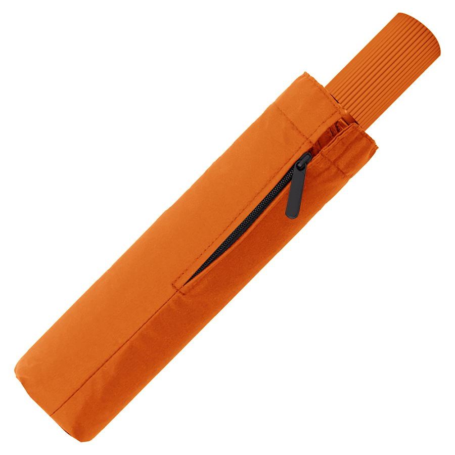 Купол выполнен из прочного полиэстера 190T с матовым покрытием, гарантирующего водонепроницаемость и устойчивость к износу. Автоматический механизм позволяет мгновенно раскрыть или сложить зонт одним нажатием кнопки, а каркас из 8 спиц обеспечивает устойчивость к ветру. Пластиковая матовая ручка обеспечивает комфорт в руке, а компактные размеры в сложенном виде (33,5 см) делают зонт идеальным спутником в городской среде.