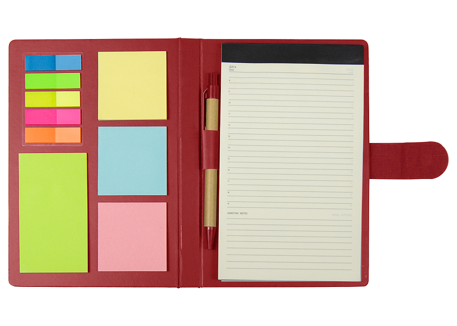 Стикеры выполнены в 3-х размерах: 3 квадратных разноцветных набора (размер: 55х55 мм), 1 набор прямоугольных (размер: 55х95 мм) и набор из 5 разноцветных закладок.