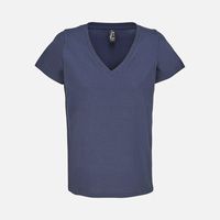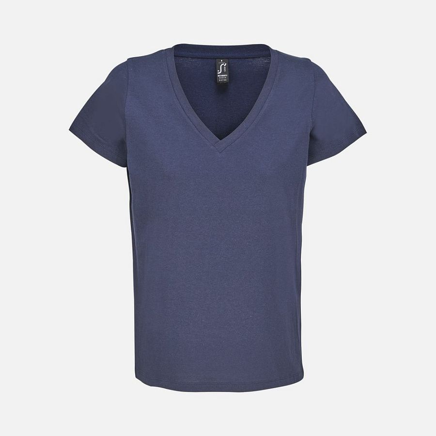 Женская футболка Regent с V-образным вырезом. Такой вырез снова актуален: он визуально удлиняет шею, подчеркивает линию ключиц и добавляет образу легкости.