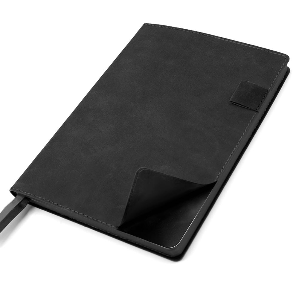 Ежедневник Efemero в гибкой обложке — это союз комфорта и функциональности. Приятная на ощупь матовая поверхность, безупречный чёрный цвет и надежный фиксатор для ручки, который всегда на виду благодаря контрастному цвету. Вам больше не нужно искать ручку в глубине сумки — она всегда там, где должна быть.