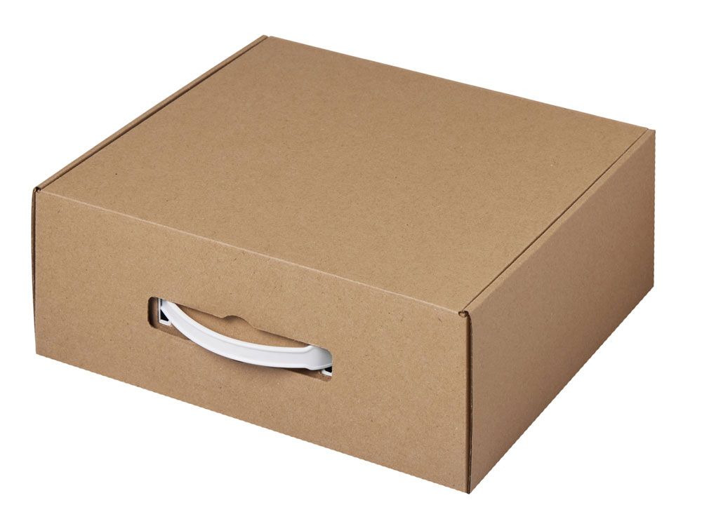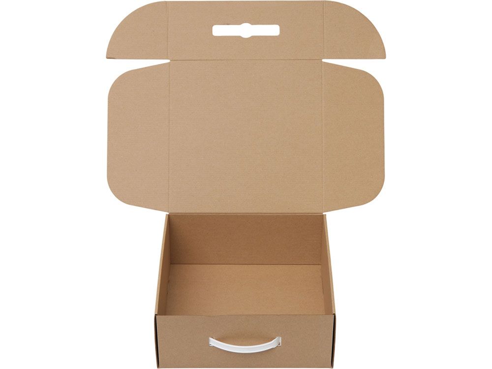 Коробка с пластиковой ручкой обеспечивает удобную функцию переноски и делает упаковку ещё более функциональной. Внутрь коробки можно поместить различные сувениры: кружку, заварочный чайник, баночку мёда или варенья. При желании можно добавить декоративный бумажный наполнитель, который подчеркнёт ваш тонкий вкус и придаст подарку завершённый вид. Съедобные товары для наполнения вы также можете заказать у нас.