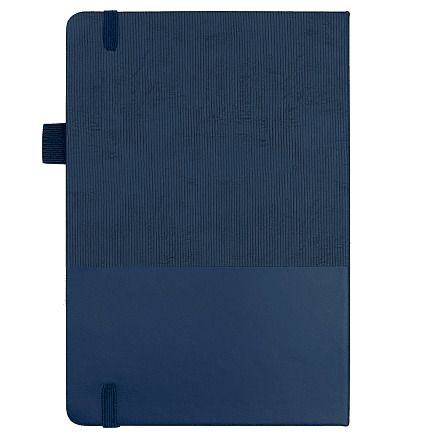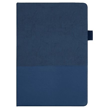 Стильный блокнот в твёрдой обложке с текстурированной верхней частью и гладким нижним сегментом. Оснащён вертикальной резинкой для фиксации и петлёй для ручки — всё под рукой.
