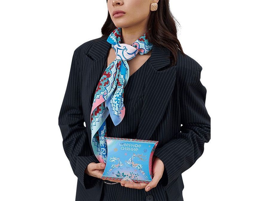 Дизайн платка «Северное сияние» от бренда «Русские в моде» навеян удивительным феноменом природы, а также сказаниями и художественной культурой народов Ямала.