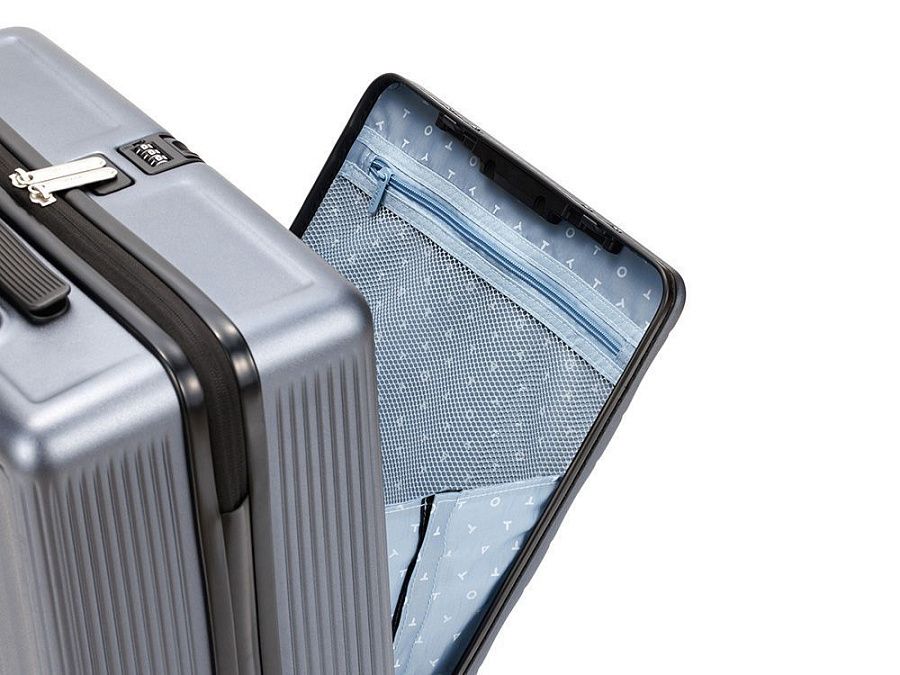 - Независимое переднее отделение с мгновенным доступом — удобно доставать ноутбук, документы или аксессуары без распаковки всего чемодана.