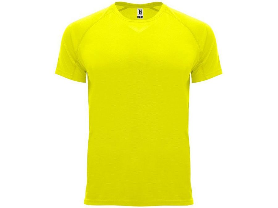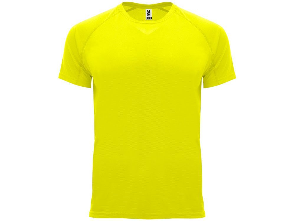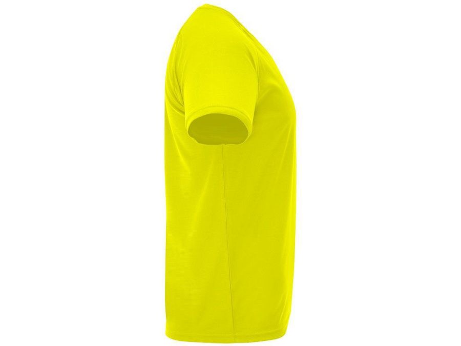 Спортивная футболка с коротким рукавом реглан. Круглый вырез горловины с отделкой плоским швом. Рукав сложного кроя для обеспечения дополнительного удобства при занятиях спортом. Отделка плоским швом с застилом по пройме и рукавам.