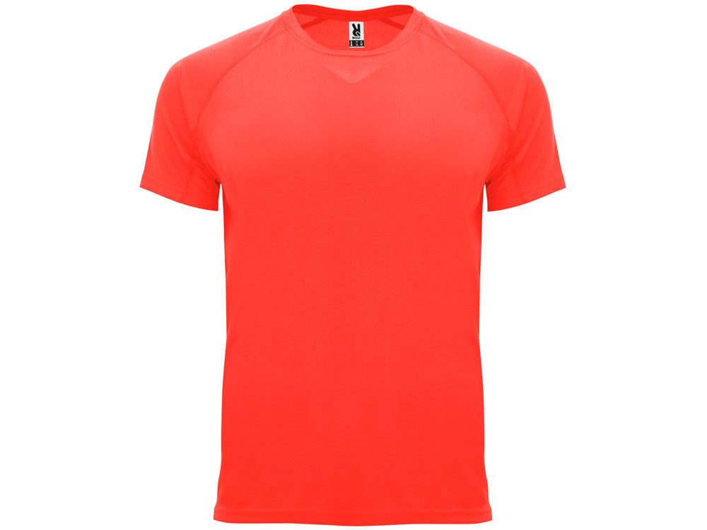 Спортивная футболка с коротким рукавом реглан. Круглый вырез горловины с отделкой плоским швом. Рукав сложного кроя для обеспечения дополнительного удобства при занятиях спортом. Отделка плоским швом с застилом по пройме и рукавам.