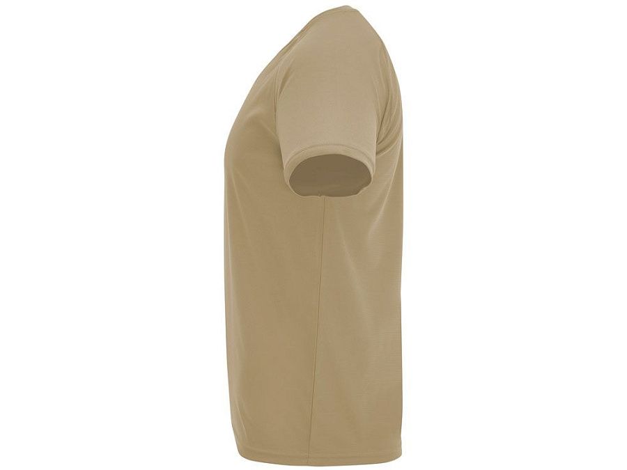 Спортивная футболка с коротким рукавом реглан. Круглый вырез горловины с отделкой плоским швом. Рукав сложного кроя для обеспечения дополнительного удобства при занятиях спортом. Отделка плоским швом с застилом по пройме и рукавам.