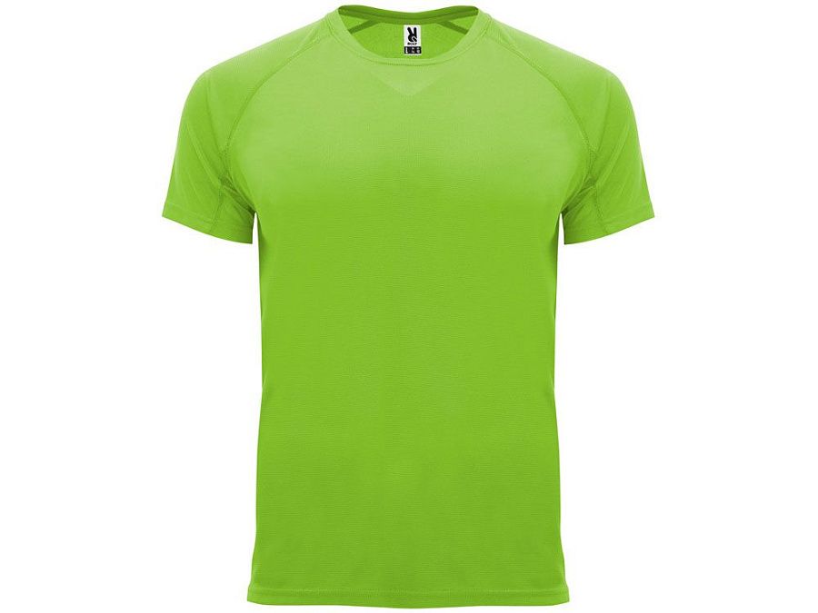 Спортивная футболка с коротким рукавом реглан. Круглый вырез горловины с отделкой плоским швом. Рукав сложного кроя для обеспечения дополнительного удобства при занятиях спортом. Отделка плоским швом с застилом по пройме и рукавам.