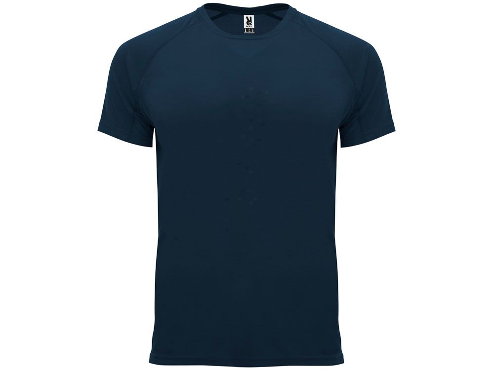 Спортивная футболка с коротким рукавом реглан. Круглый вырез горловины с отделкой плоским швом. Рукав сложного кроя для обеспечения дополнительного удобства при занятиях спортом. Отделка плоским швом с застилом по пройме и рукавам.