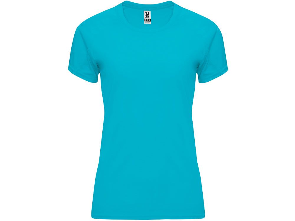 Спортивная футболка с коротким рукавом реглан для женщин. Круглый вырез горловины с отделкой плоским швом. Рукав сложного кроя для обеспечения дополнительного удобства при занятиях спортом. Отделка плоским швом с застилом по пройме и рукавам.