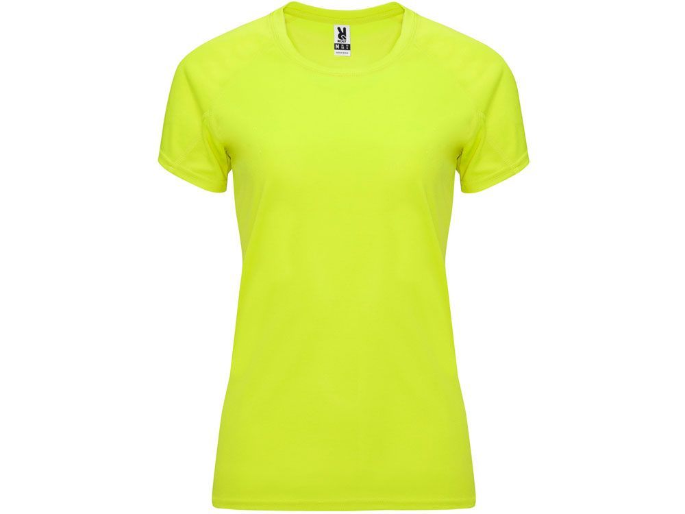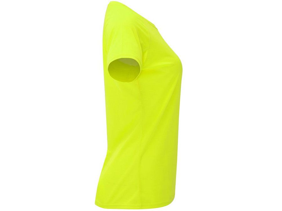 Спортивная футболка с коротким рукавом реглан для женщин. Круглый вырез горловины с отделкой плоским швом. Рукав сложного кроя для обеспечения дополнительного удобства при занятиях спортом. Отделка плоским швом с застилом по пройме и рукавам.