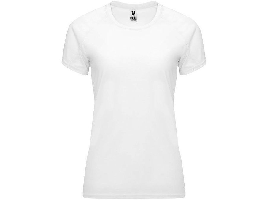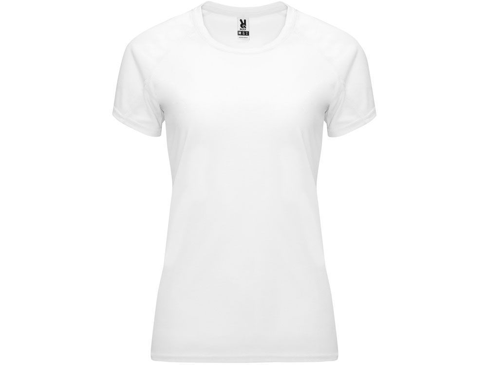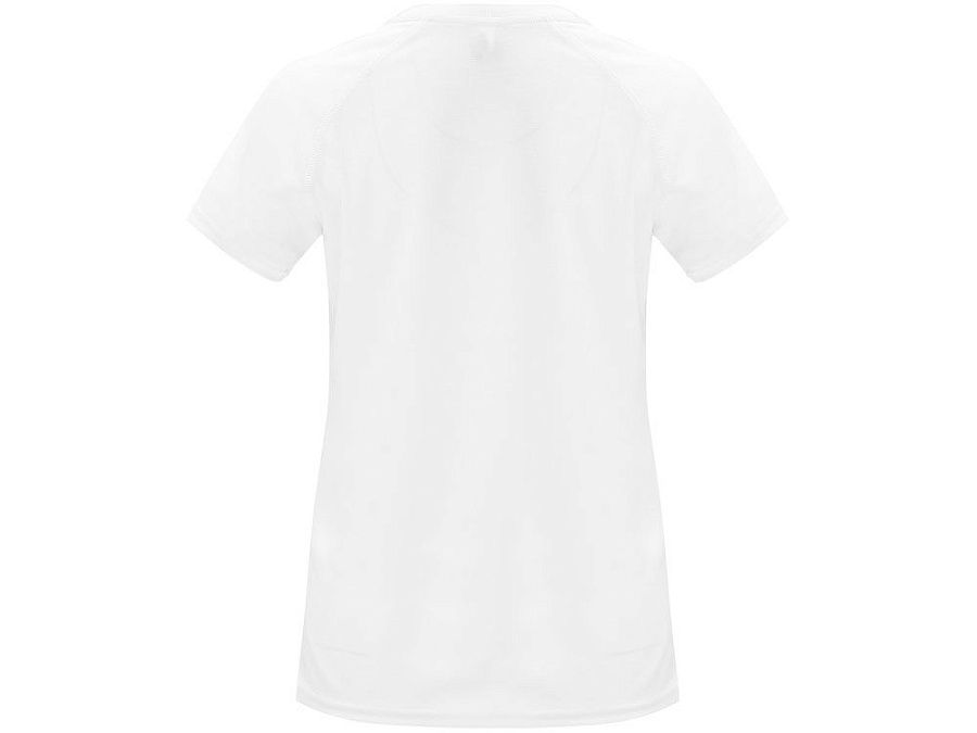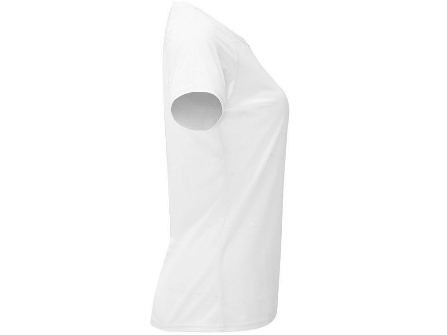Спортивная футболка с коротким рукавом реглан для женщин. Круглый вырез горловины с отделкой плоским швом. Рукав сложного кроя для обеспечения дополнительного удобства при занятиях спортом. Отделка плоским швом с застилом по пройме и рукавам.