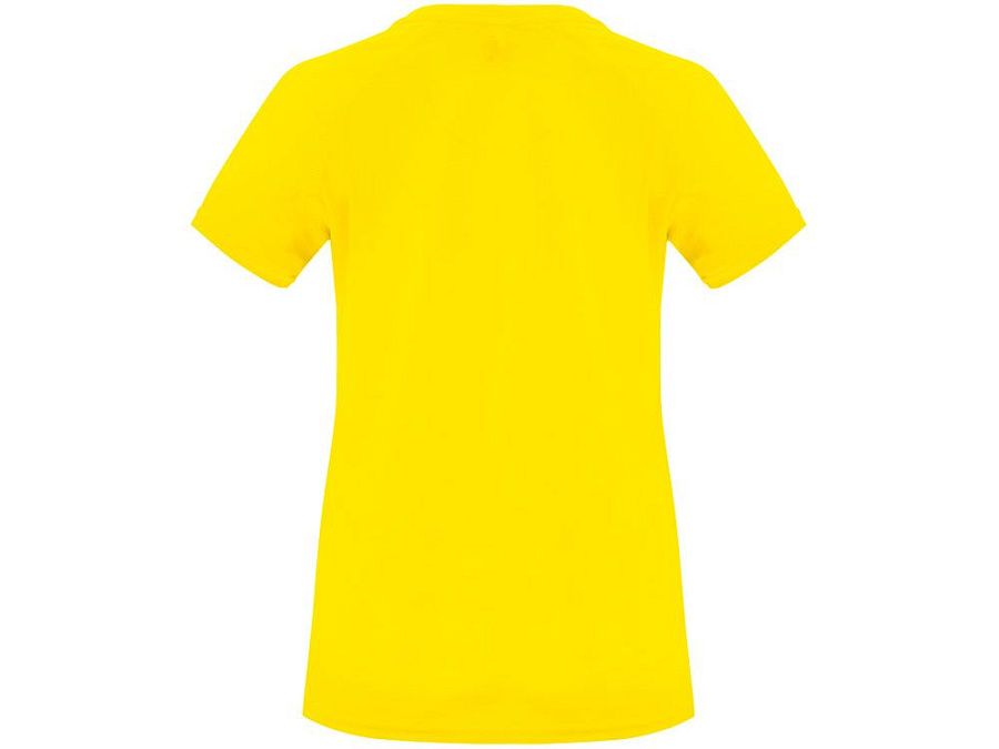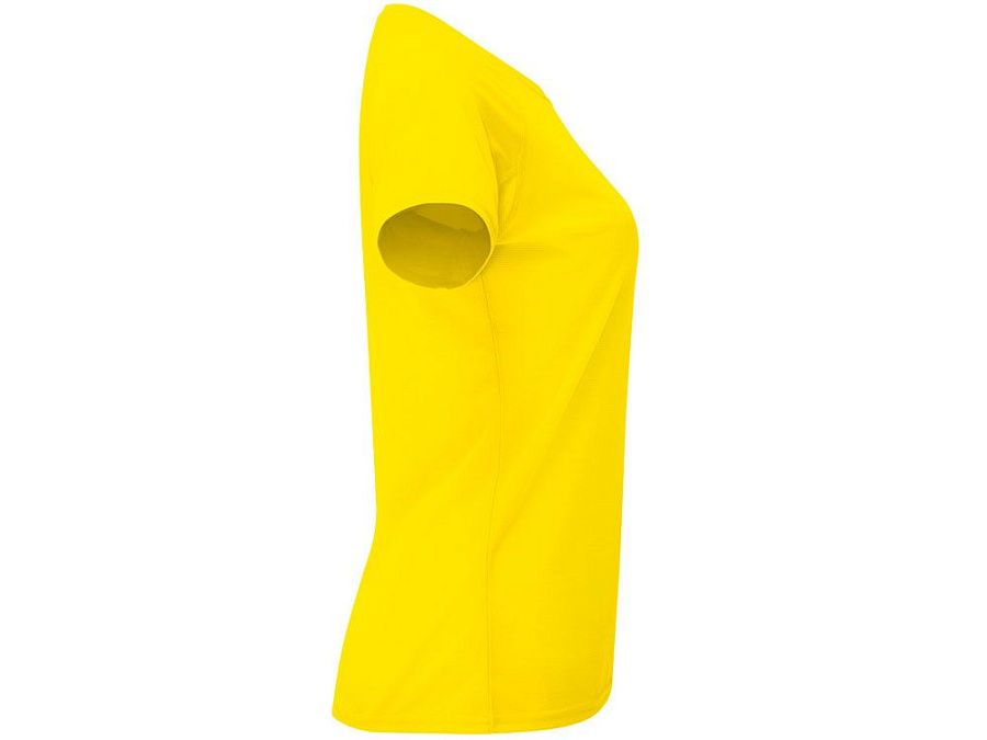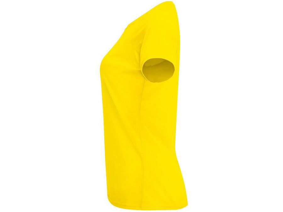 Спортивная футболка с коротким рукавом реглан для женщин. Круглый вырез горловины с отделкой плоским швом. Рукав сложного кроя для обеспечения дополнительного удобства при занятиях спортом. Отделка плоским швом с застилом по пройме и рукавам.