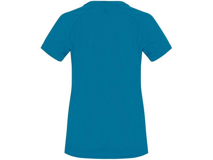 Спортивная футболка с коротким рукавом реглан для женщин. Круглый вырез горловины с отделкой плоским швом. Рукав сложного кроя для обеспечения дополнительного удобства при занятиях спортом. Отделка плоским швом с застилом по пройме и рукавам.